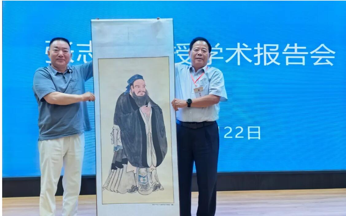 孔令玉會長向儒促會常務理事兼安徽召集人、天象集團董事長孔令發贈送孔子行教像。