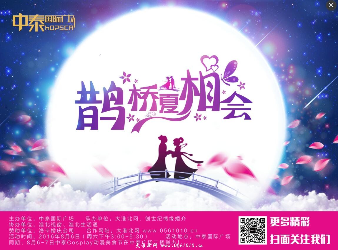 同期,8月6日下午3點有七夕節中泰鵲橋會同時舉辦,歡迎淮北優秀的單身男女報名參加!