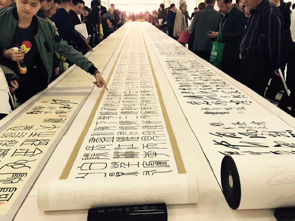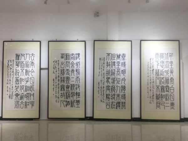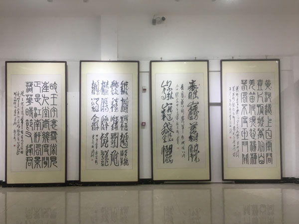此次展覽由中國毛體書法家協會、中國毛體書法家協會安徽分會、天象集團有限責任公司聯合主辦,共展出了郭光梅183幅精選作品,包含了毛體、隸書等8種字體,展覽將持續到4月20日。
